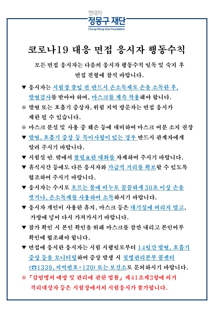 | 2020 온드림 미래산업 인재 장학생 면접전형 코로나19 대응 응시자 행동수칙 |