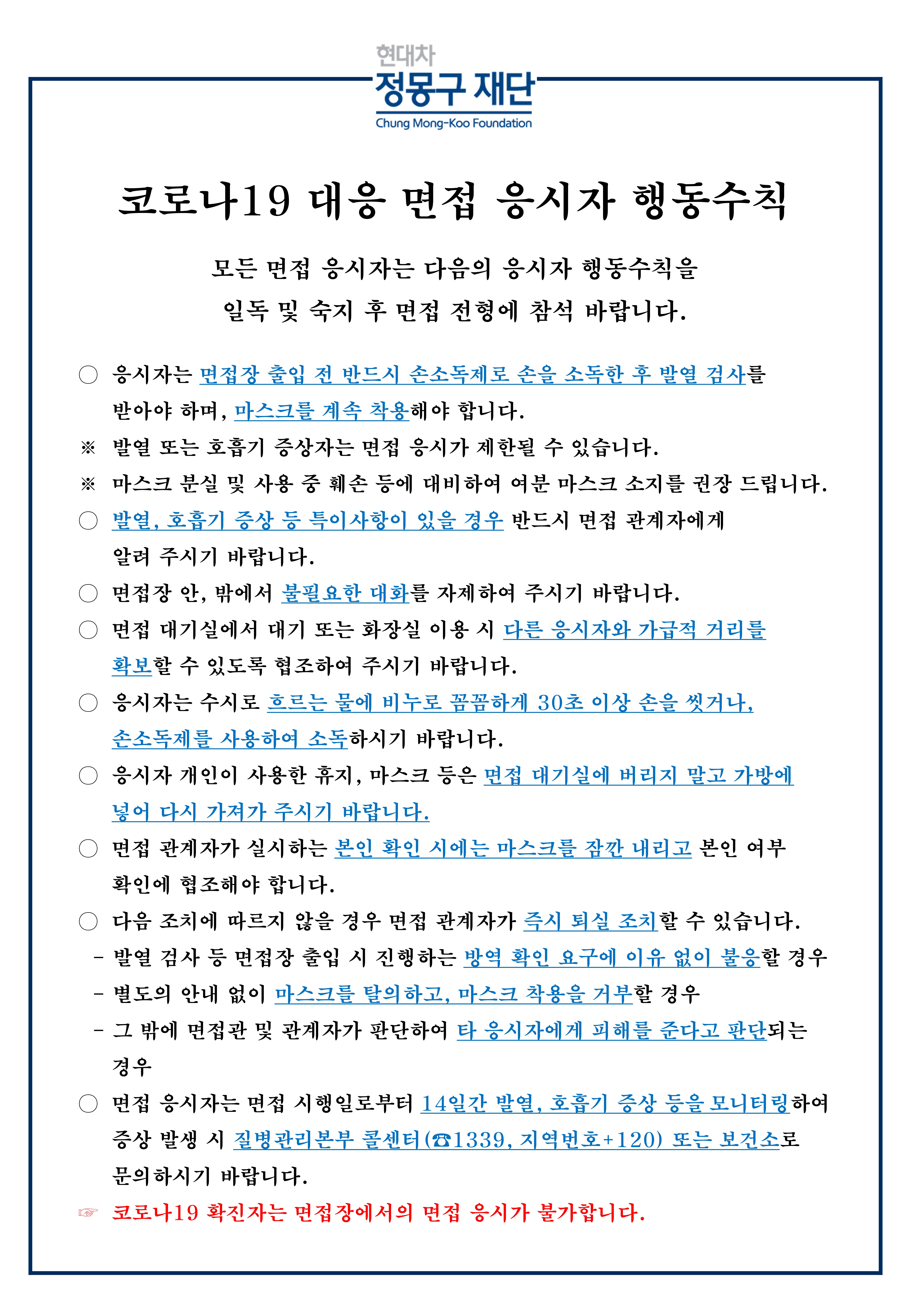 | 2021 온드림 미래산업 인재 장학생 코로나19 대응 면접 응시자 행동수칙 |