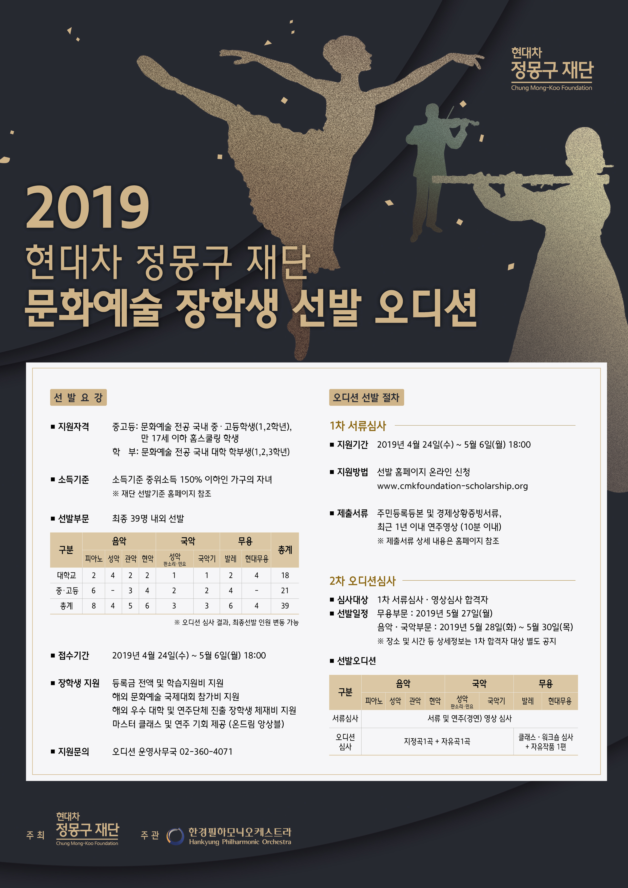 | 2019년 문화예술 장학생 선발 오디션 안내 |