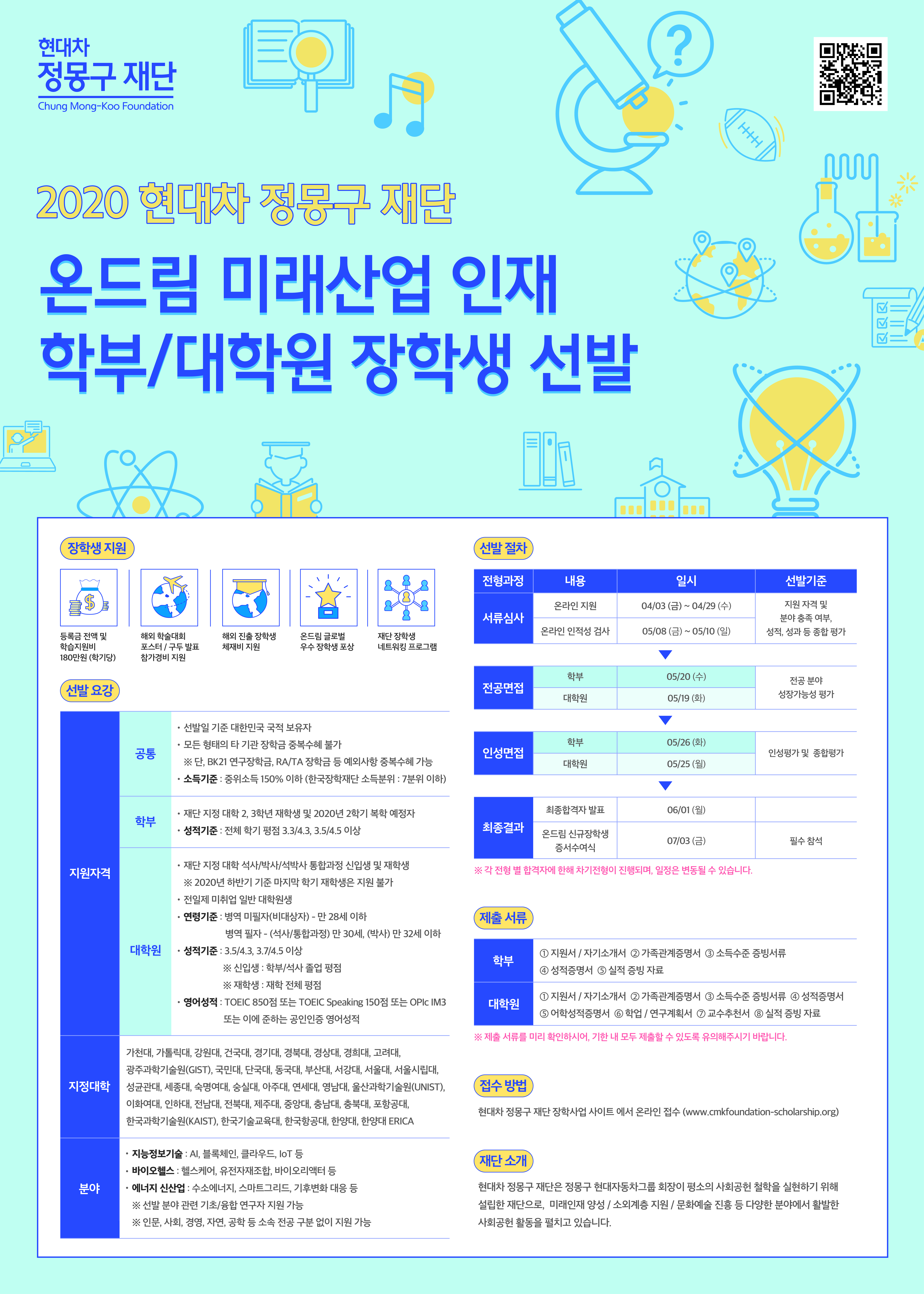 재단은 코로나 19로 인한 '사회적 거리 두기' 분위기 등 현 상황이 지속될 경우 면접방식 변경 등 지원 학생들의 건강을 최우선으로 하면서도 공정한 선발이 될 수 있도록 최선의 대응책을 마련한다는 계획이다.