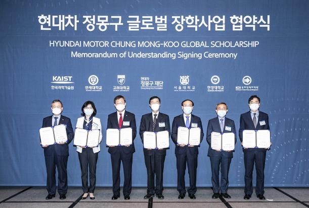 현대차 정몽구재단은 고려대·서울대·연세대·한양대·KAIST·KDI국제정책대학원 등과 ‘현대차 정몽구 글로벌 장학사업 협약식’을 개최했다고 23일 밝혔다.