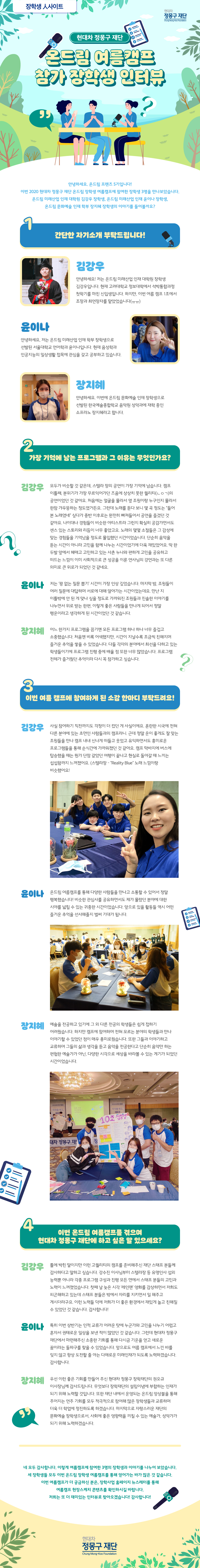 2020 온드림 여름캠프 참가 장학생 인터뷰 - 김강우 & 윤이나 & 장지혜 장학생