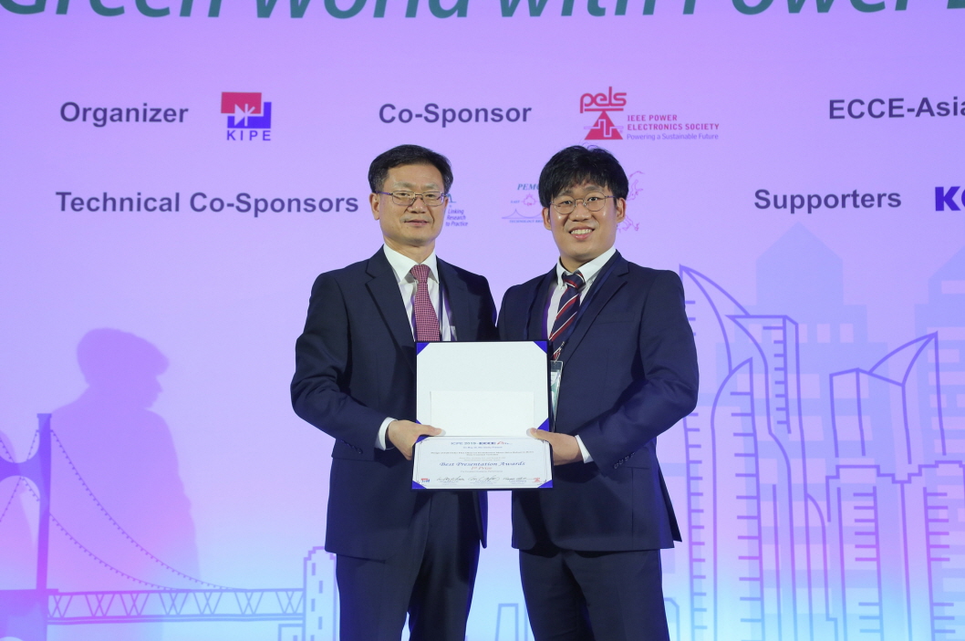 유지원 : 저는 설승기 교수님 연구실에서 전력전자라는 분야를 전공하고있습니다. 전력전자공학이란 전기에너지를 반도체를 이용하여 제어하고 변환하는 기술을 의미합니다. 전력전자 공학은 태양광, 풍력 등 신재생 에너지 발전에 필수적으로 이용되는 기술일 뿐만 아니라, 가전제품, 전기자동차의 구동에도 폭넓게 활용되는 기술입니다. 저는 넓은 전력전자의 분야 중, 특히 전기자동차, 풍력발전 등에 사용되는 전동기 제어기술과, 차세대 전력반도체 기술로 여겨지는 SiC 전력반도체 구동 기술을 집중하여 연구하고 있습니다. 이번 국제 저널에 출판한 연구는 유도전동기의 동작 중 실시간으로 전동기의 상태를 감지하여, 저항, 인덕턴스 등의 변화를 제어에 반영하는 기술(Online parameter estimation)에 관한 연구입니다. 특히 이중에서 교류와 직류를 동시에 주입하여, 구동과 동시에 저항을 추정하는 기술이 있는데, 이러한 기술의 단점이라고 여겨졌던 토크 맥동을 저감하는 연구를 출판하게 되었습니다.